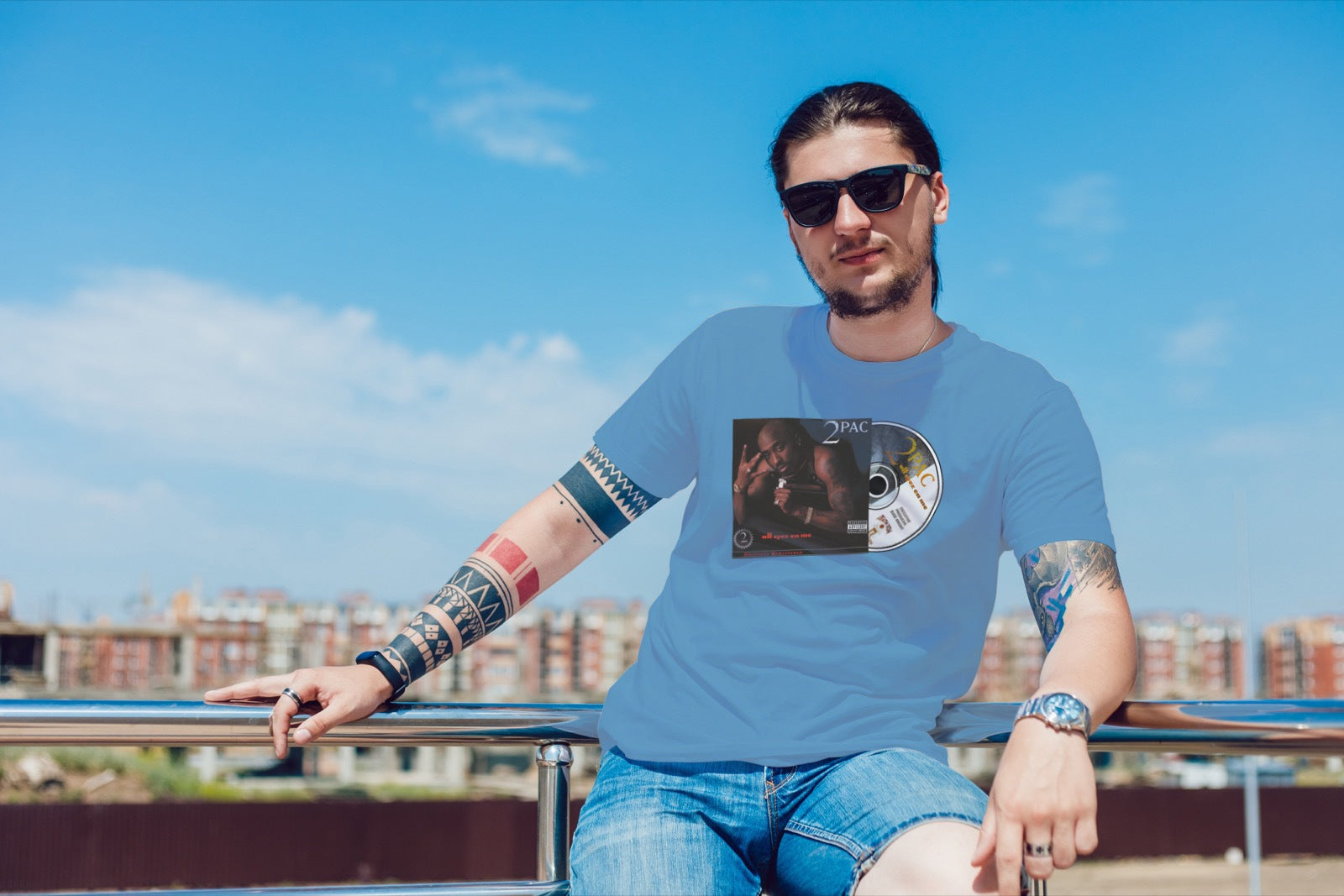 Represent your love for iconic rapper 2Pac with our "ALL EYES ON ME" Album cd cover T-shirt. Made with soft, high-quality material, this shirt features the iconic album cover and will keep you comfortable all day long. Show off your unique style and pay homage to a legend with this must-have shirt.