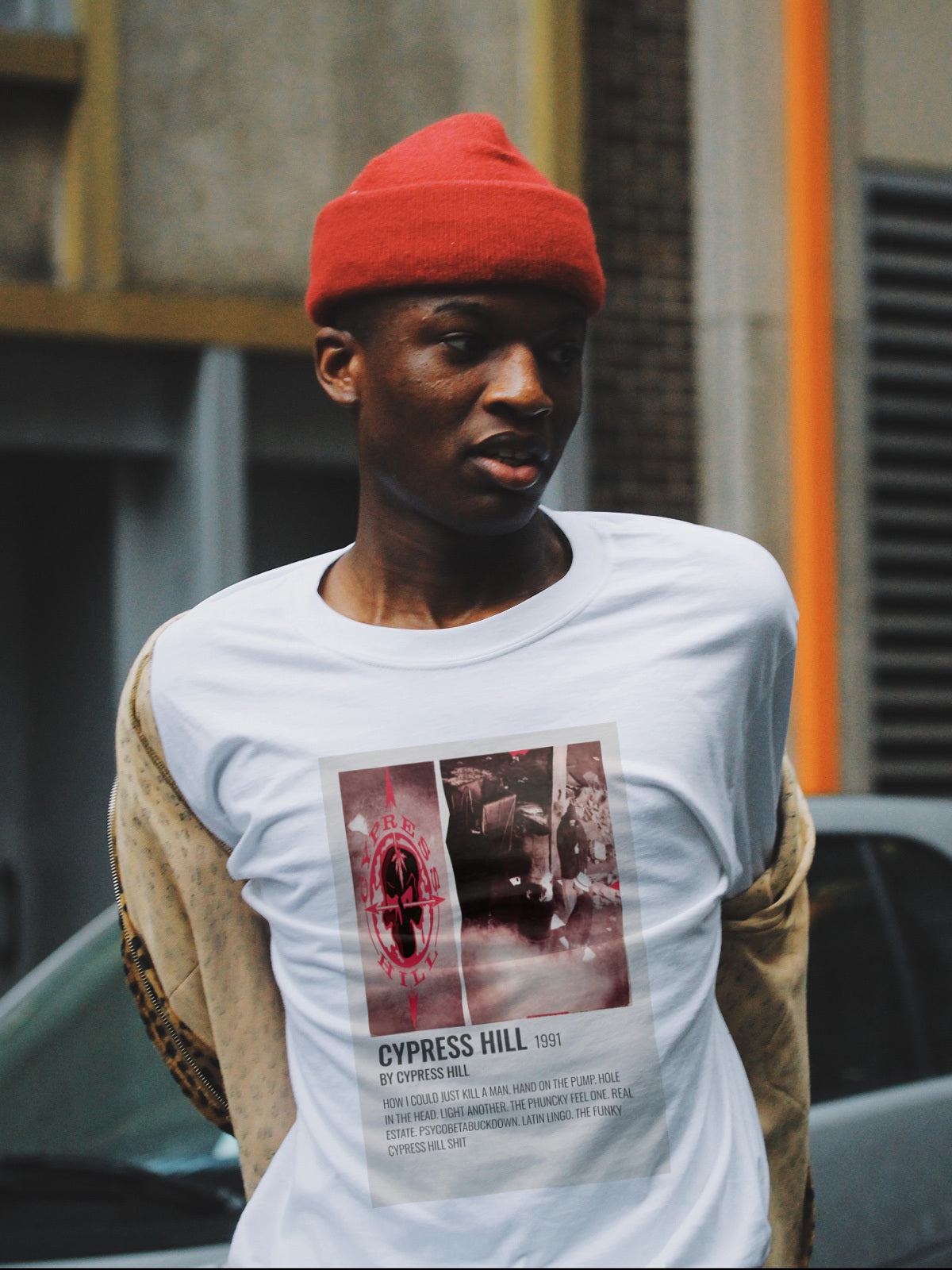 This Cypress Hill t-shirt features the iconic album cover from 1991. Crafted with quality materials, this t-shirt combines style and comfort. Show off your love for this legendary hip hop group and their groundbreaking album with this must-have piece.