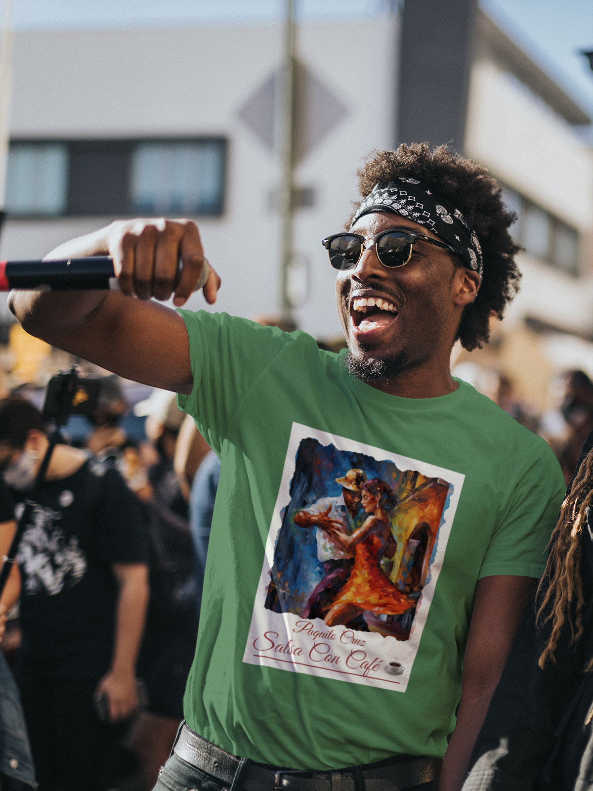 Celebrate the vibrant fusion of rhythm and culture with the Salsa Con Cafe T-shirt. Crafted for enthusiasts who appreciate both lively salsa beats and rich coffee traditions, this shirt combines comfort and style effortlessly. Its quality fabric ensures durability and breathability, making it perfect for dance sessions or casual wear. Embrace your passion gracefully with a design that speaks to your love for salsa and café culture.