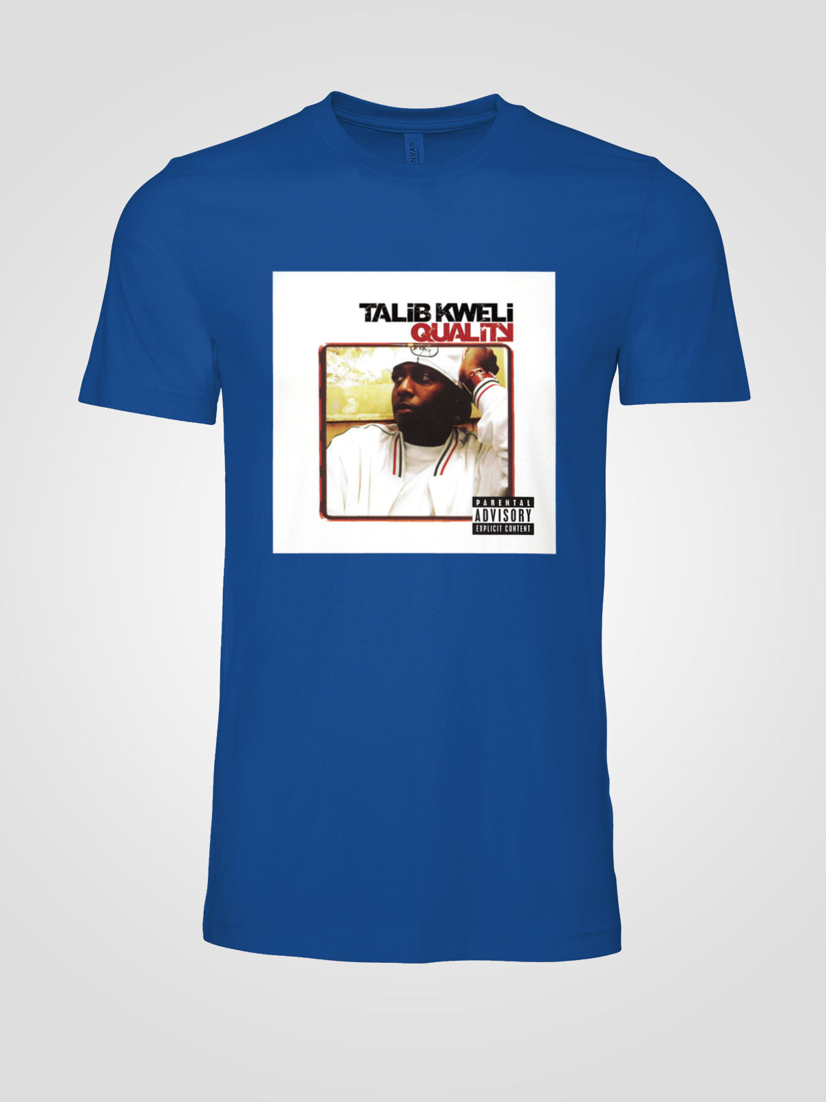 The TALIB KWELI "Quality" album cover T-shirt is a stylish and comfortable way to show your love for this iconic album. Made from high-quality materials, it features the album cover design and is sure to be a hit with any fan. Elevate your wardrobe with this must-have addition.